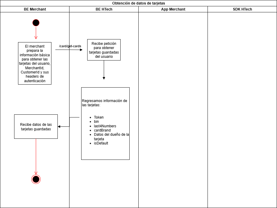 2. El BE HTech recibe la petición para obtener las tarjetas del usuario.