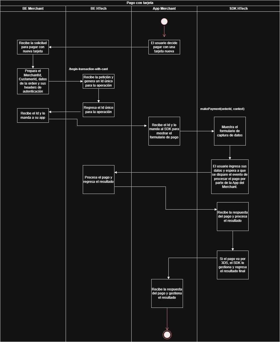 - El SDK HTech procesa la petición y muestra el formulario de captura de datos para gestionar el pago.