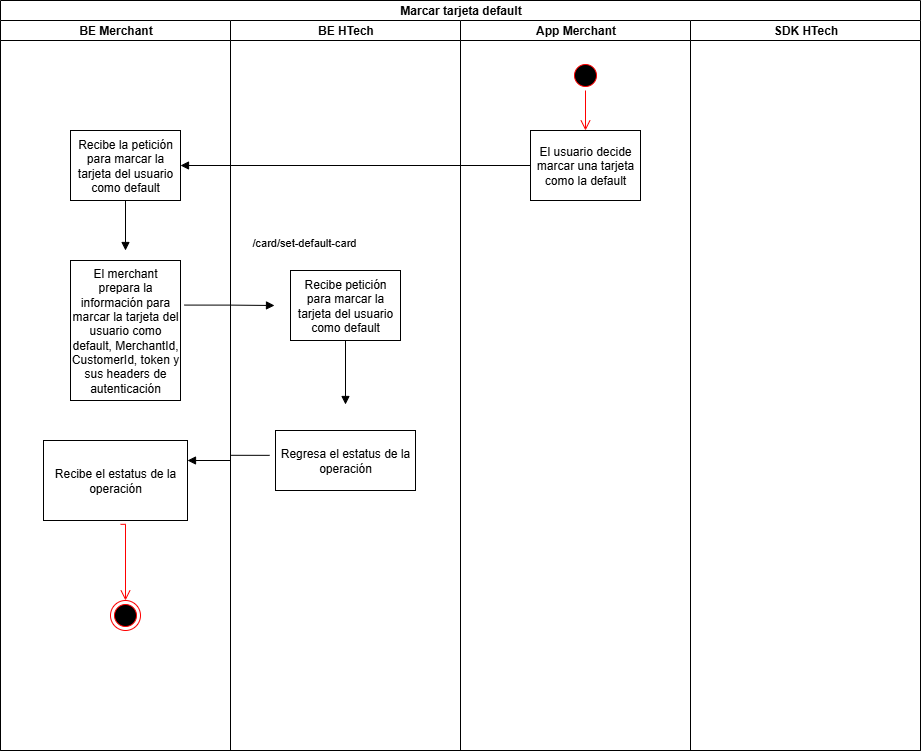 3. El BE HTech recibe la petición para asignar como default la tarjeta del usuario.
