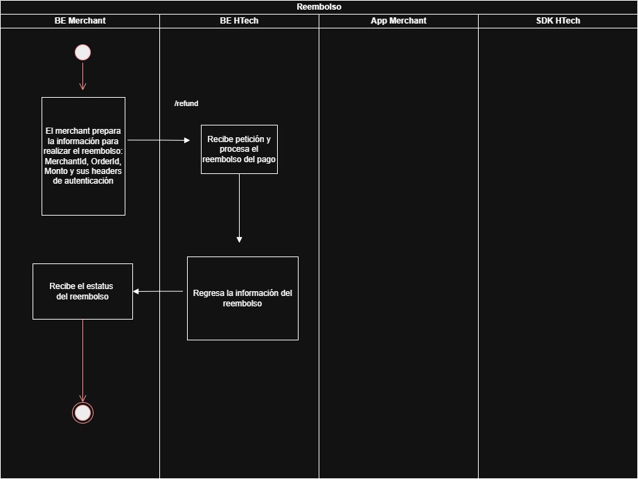 - El BE HTech recibe la petición para procesar el reembolso.