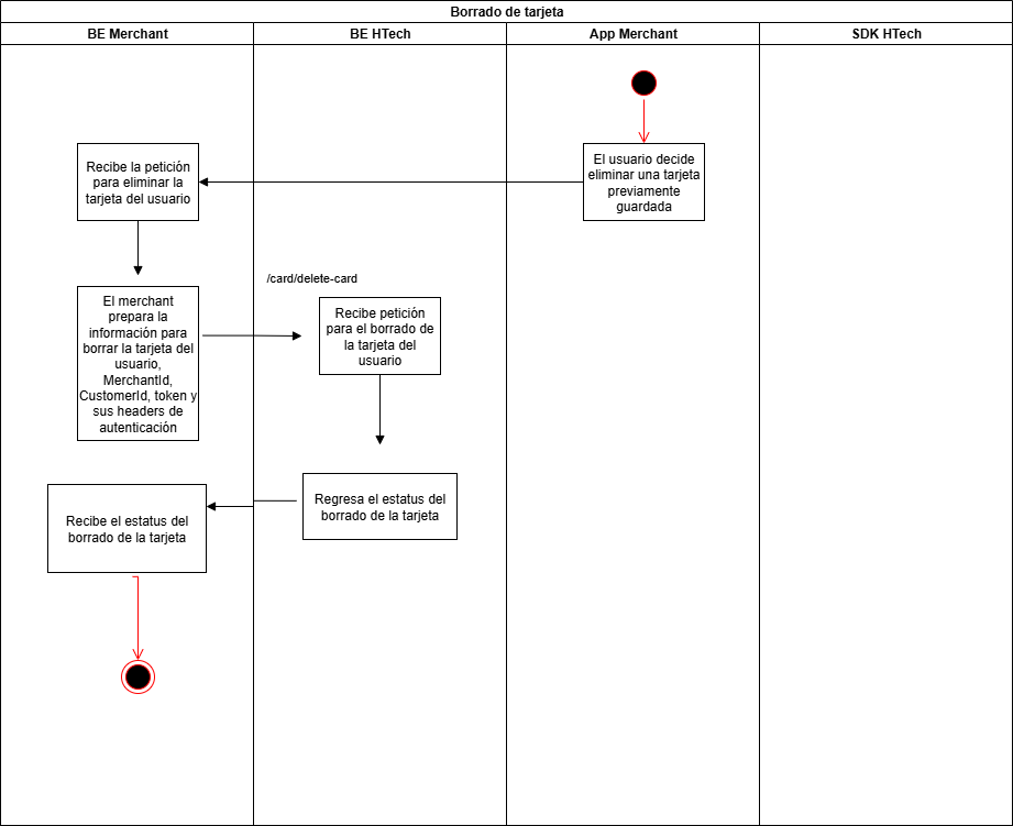 1. La App Merchant recibe por parte del usuario la instrucción del borrado de una tarjeta.